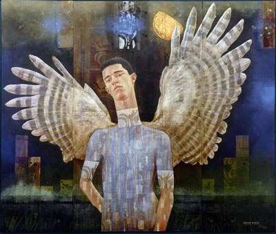 第59回新現美術協会展 「ねえ 梟になりたいね 森の深くで眠りたい−X」 F130 ミクストメディア