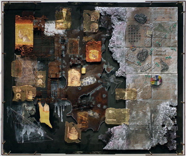 第73回新現美術協会展 ダビンチのスケッチによる変奏 F150号 混合技法、鉄、石膏、アクリル転写